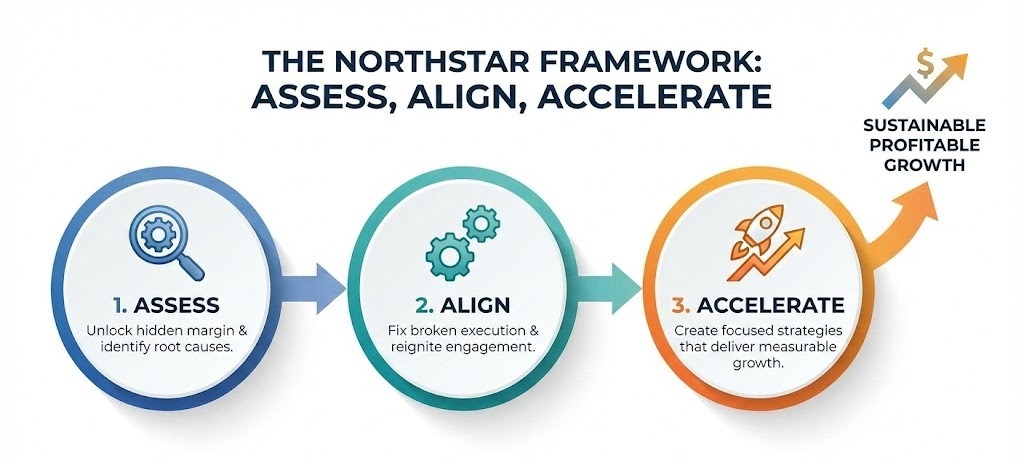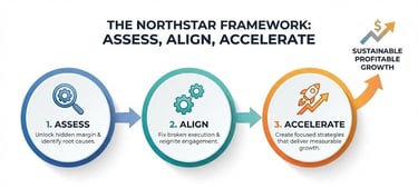 Legacy structures, distributor reliance, and "growth at all costs" strategies are failing. NorthStar helps leadership teams, owners, investors, and lenders navigate uncertainty with confidence, replacing consultant theory with operator-led execution.